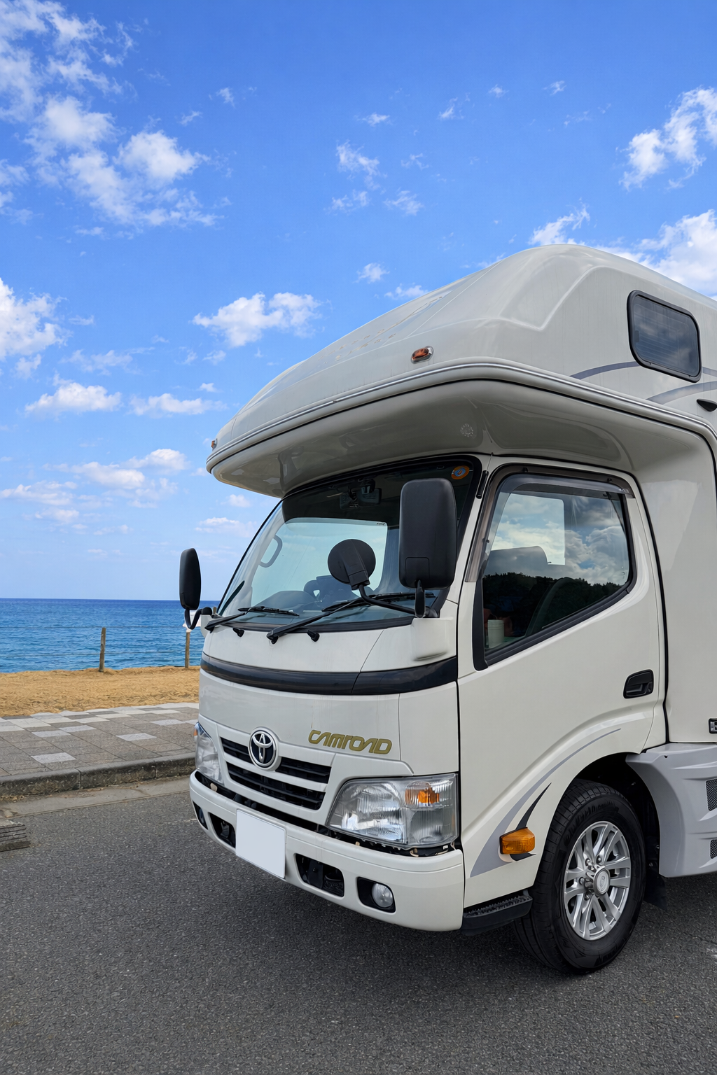 トヨタ・カムロードベースで、視界が広く取り回しも良好。初めてのキャンピングカーレンタルでも運転しやすく、家族旅行や長距離ドライブでも安心です。